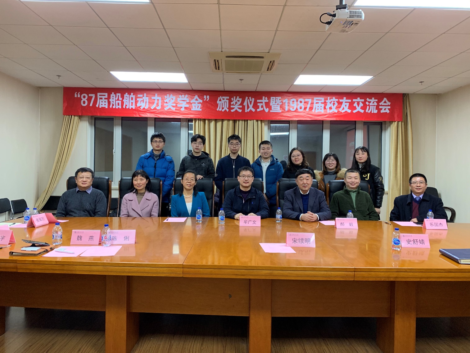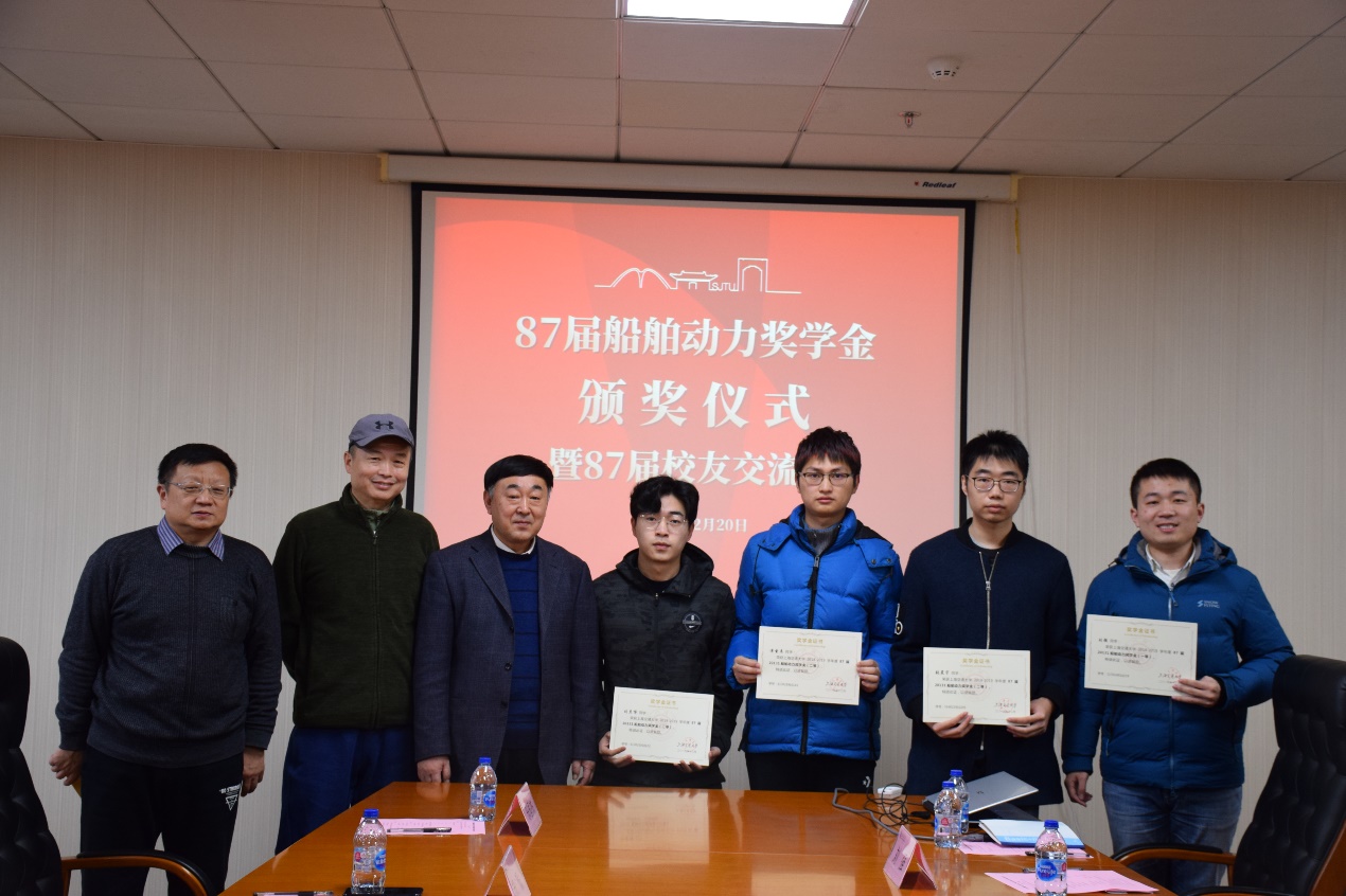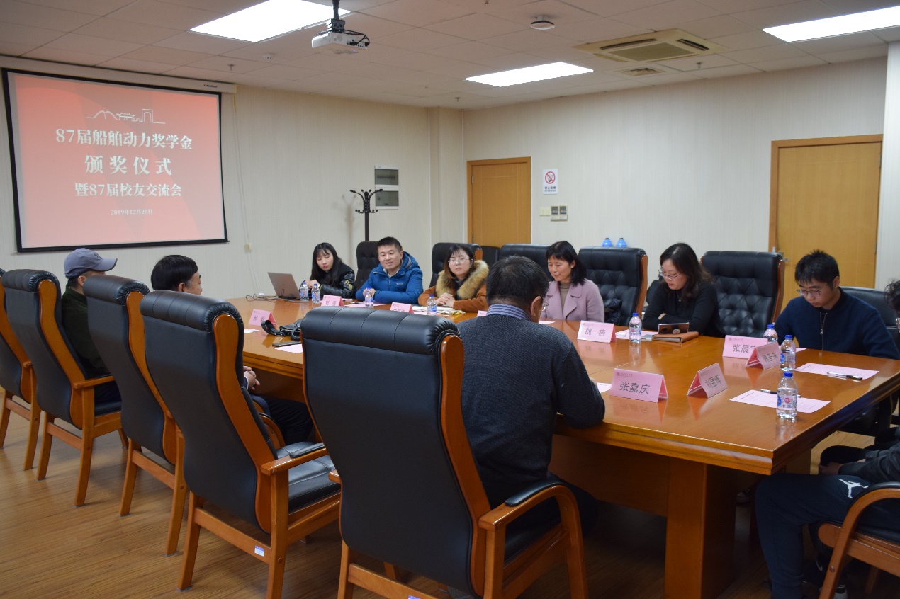 12月20日下午,澳门十大信誉好的网站87届20131船舶动力奖学金颁奖仪式在木兰船建大楼A1008会议室举行。87届校友牟广文学长,郝毅学长,张翠熙学姐,乐国杰学长,张嘉庆学长,船建学院党委副书记宋续明,船舶与海洋工程系副系主任陈俐,校友工作联系人魏燕,学生事务负责人史舒婧,船建学工办辅导员邹碧铖,2019年度船舶动力奖学金4位获奖学生出席仪式。