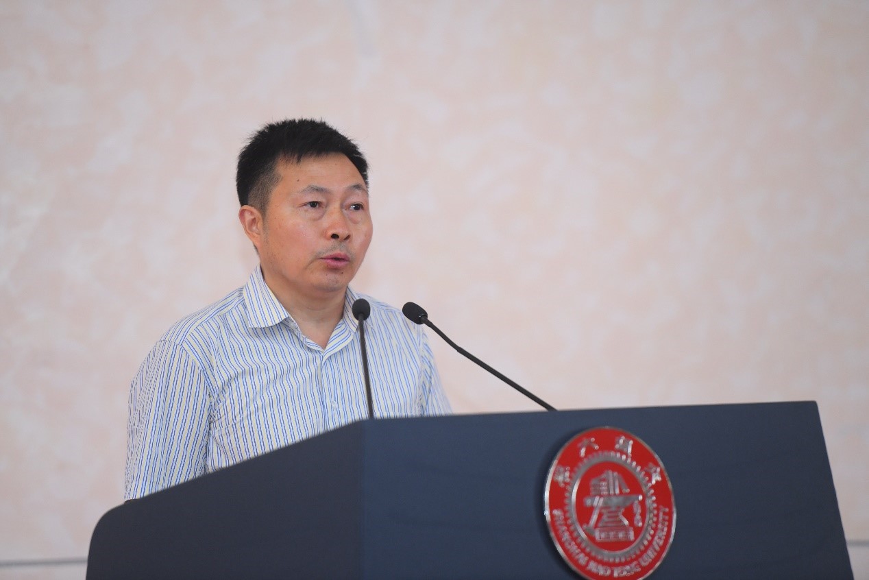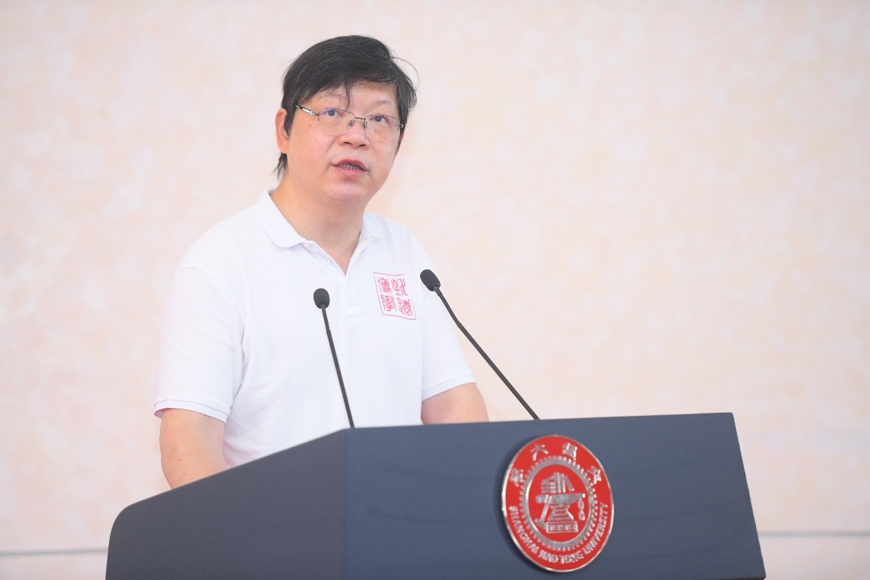 而后,导师代表工程力学系长聘教授王嘉松老师发言。他希望新生们能不忘初心,勇于担当,在研究中能够早做规划,早定目标,学会耐得住寂寞,hold住情绪。在探索中注重扎牢基础+拓宽视野+批判性思维+多学科的交叉与融合思维,并培养自己的人文情怀,获得心灵与精神的提升。