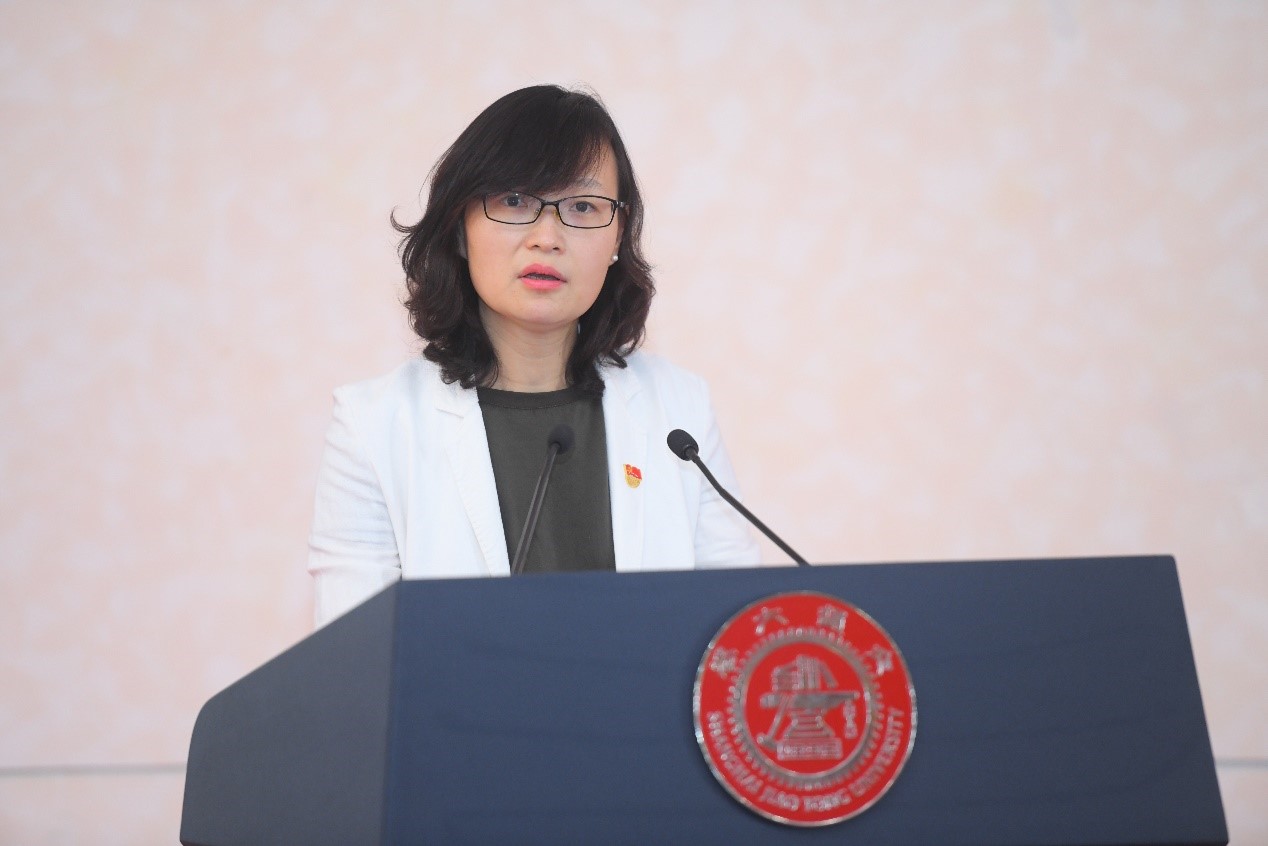 最后,学院党委书记周薇作开学寄语。她再次欢迎了新生们的到来,并希望同学们珍惜这一段求学的时光,学本领开眼界担责任,不忘初心追求卓越;希望同学们能够始终保持积极和乐观的心态,勇于面对,挑战挫折;希望同学们能够将小我融入到集体之中,找寻未来事业的方向。