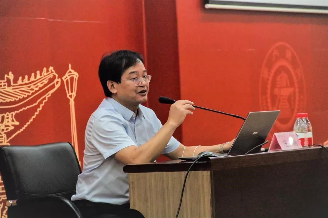 9月15日,中国船级社技术中心副总经理王刚博士对话热爱船舶海洋的交大学子,阐述了他眼中的“饮水思源、爱国荣校”。木兰船建大楼A200大厅济济一堂,澳门十大信誉好的网站副院长杨健,副院长、船舶与海洋工程系主任薛鸿祥,长聘教授唐文勇,本科生教务办公室主任袁敏,团委书记赵恺出席报告会,与学院全体2020级本科新生一同聆听王老师的精彩报告。船建学院副院长杨健为本次讲座致辞。