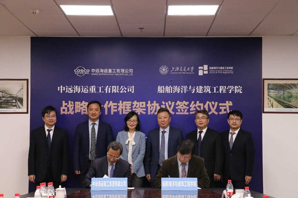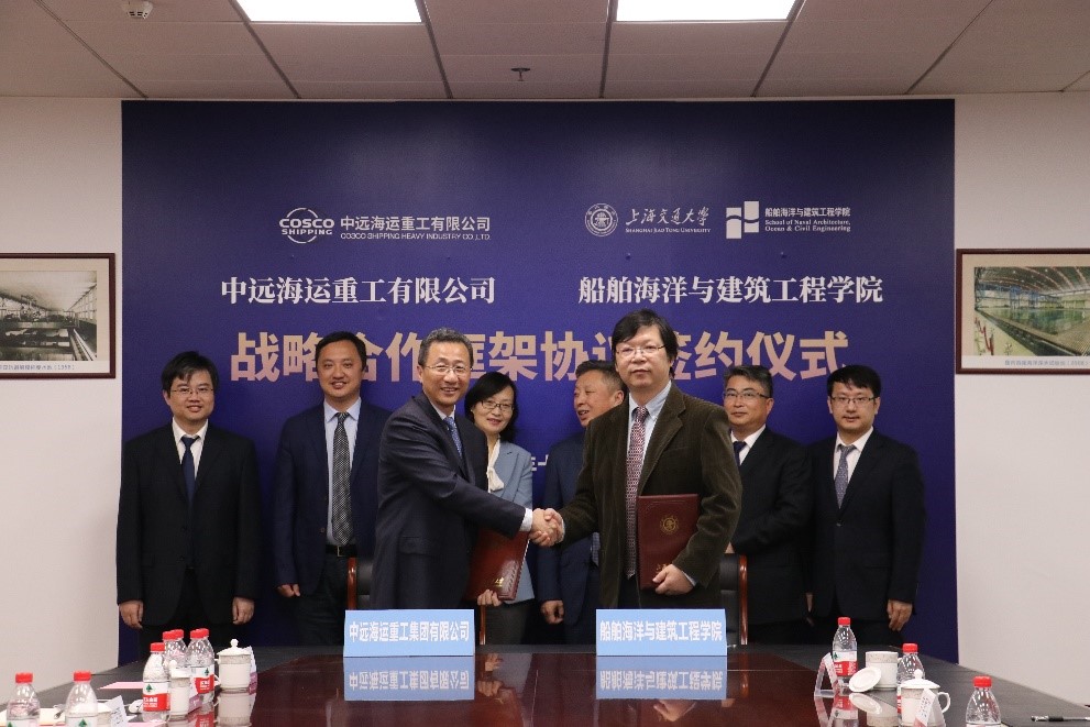 10月15日,上海交大船建学院与中远海运重工有限公司签署合作协议,在基础学科研究、科技成果转化、人才教育培养等方面建立全面战略合作伙伴关系。签约仪式在木兰船建大楼举行,中远海运重工有限公司董事长、总经理梁岩峰、党委书记、副总经理李懿文,船建学院院长廖世俊、党委书记周薇,双方有关部门、学科负责人、教师代表参加活动。廖世俊主持会议,代表船建学院对梁岩峰一行的到来表示热烈欢迎。