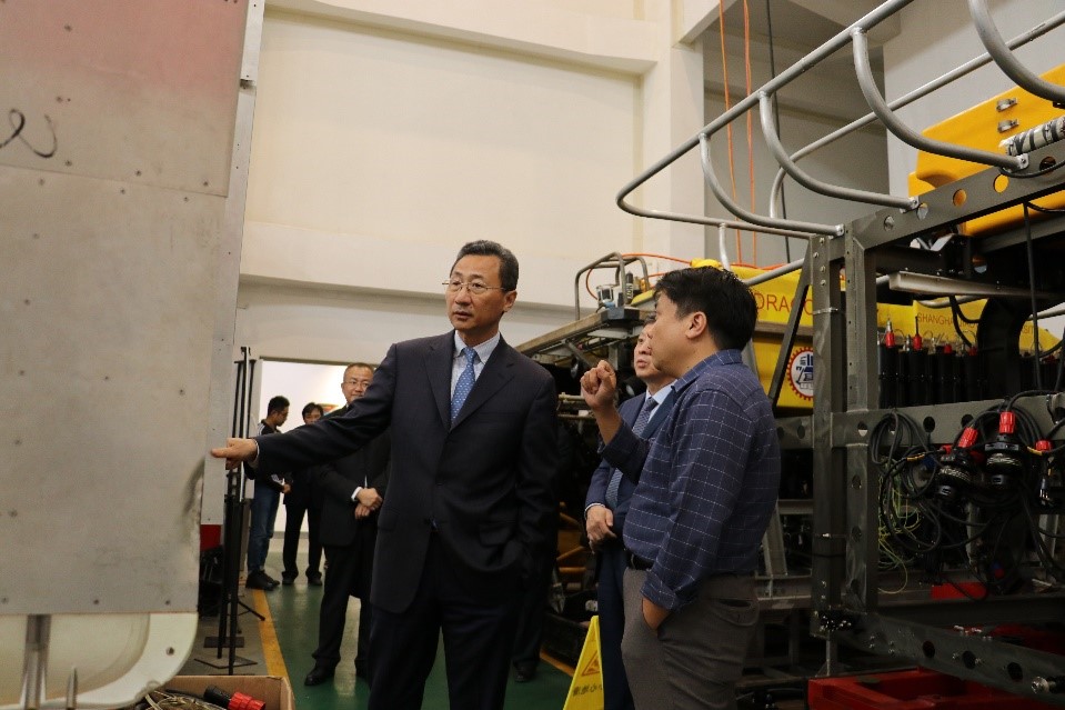会前,梁岩峰一行在船建学院党委副院长薛鸿祥、彭涛、副书记宋续明等的陪同下参观了海洋工程国家重点实验室和船舶设计研究所。