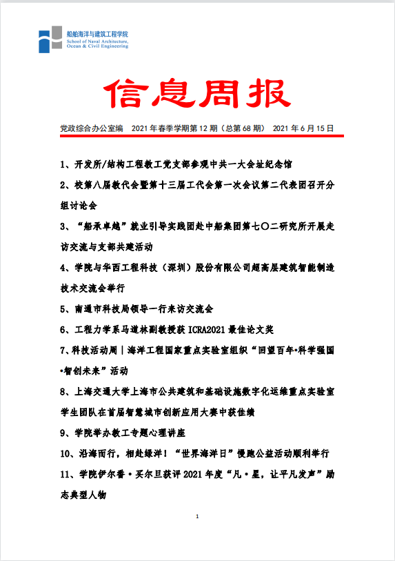 船建学院信息周报 2021年春夏学期第10期