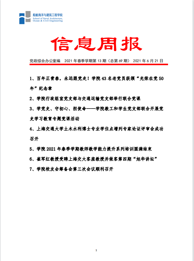 船建学院信息周报 2021年夏季学期第2期
