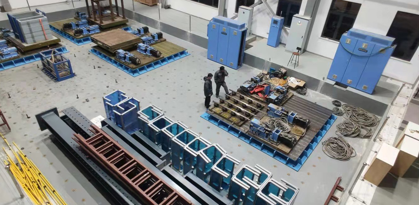 实验室拥有4个2m×2m的振动台,采用模块式台阵设计,既可以拼接成1个4m×4m的大型振动台,进行方型建筑物或结构物的抗震试验,也可以多个台面以一定间隔排开,形成线性台阵进行桥梁、隧道等长线形结构物的抗震试验。振动台采用独特的伺服电机驱动方式,现有X、Y两向两个自由度,既可以模拟地震波激励作用,也可以用于工业产品的高频振动试验研究。4台最大有效承载力20吨,模拟地震的有效频率范围0.1~50Hz,最大加速度1.0g;模拟工业振动的有效频率范围0.1~200Hz,最大加速度2.0g。可以在结构工程、岩土工程、桥梁工程、隧道工程、海洋工程专业、机械工业设备、航空航天等专业领域,面向校内外教师、本科生、研究生和社会开展教学、科学研究和相关测试业务。
