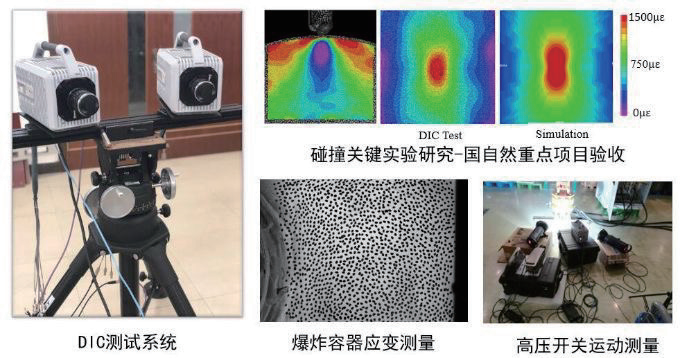 该高速采集系统最大像素分辨率为1024×1024,满像素最大拍摄帧数12500Fps,最大拍摄帧数1000000 Fps,采用优化的3D数字图像相关性运算法则,可测量爆破、冲击下的瞬态高速运动物体,并通过DIC数字图像相关技术实现非接触式的全场应变、位移及速度数据的测量,能够满足高速、大应变、大变形、大范围、大尺寸等条件下的测量及结构振动模态的测量分析。